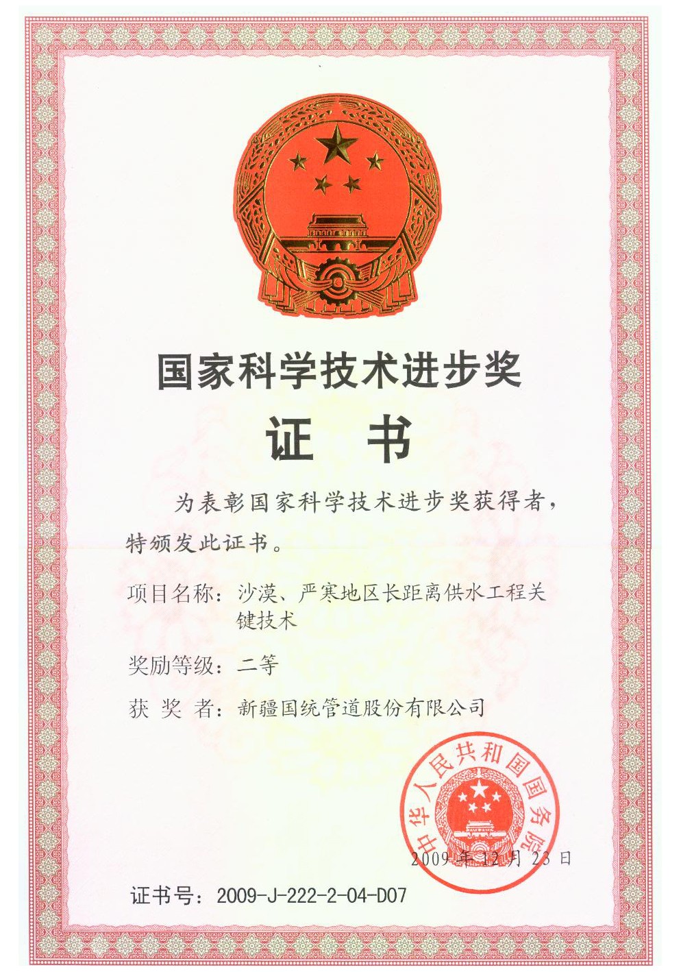 國家科學(xué)技術(shù)進(jìn)步獎(jiǎng)證書